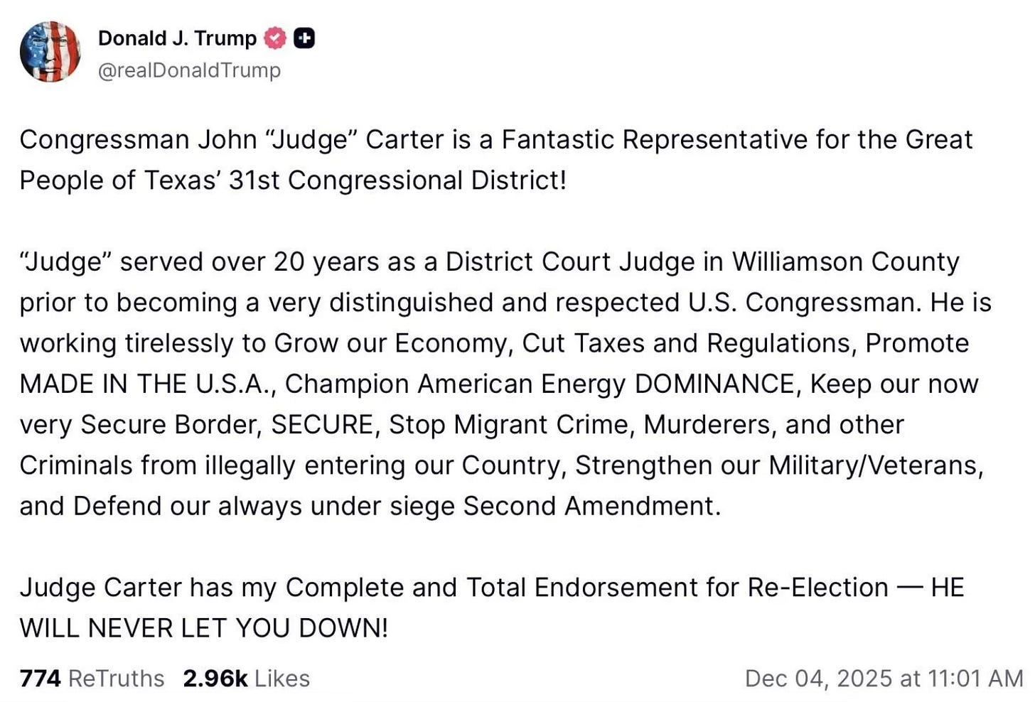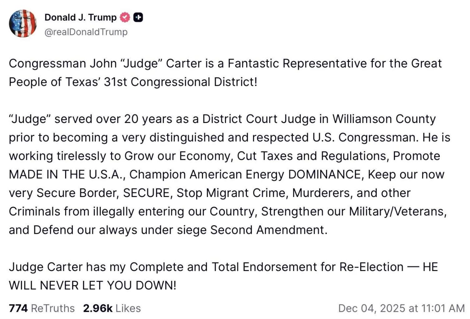 Last week, her campaign suffered another major blow after Donald Trump endorsed John Carter, a district court judge from Texas, instead of Valentina Gomez Noriega.